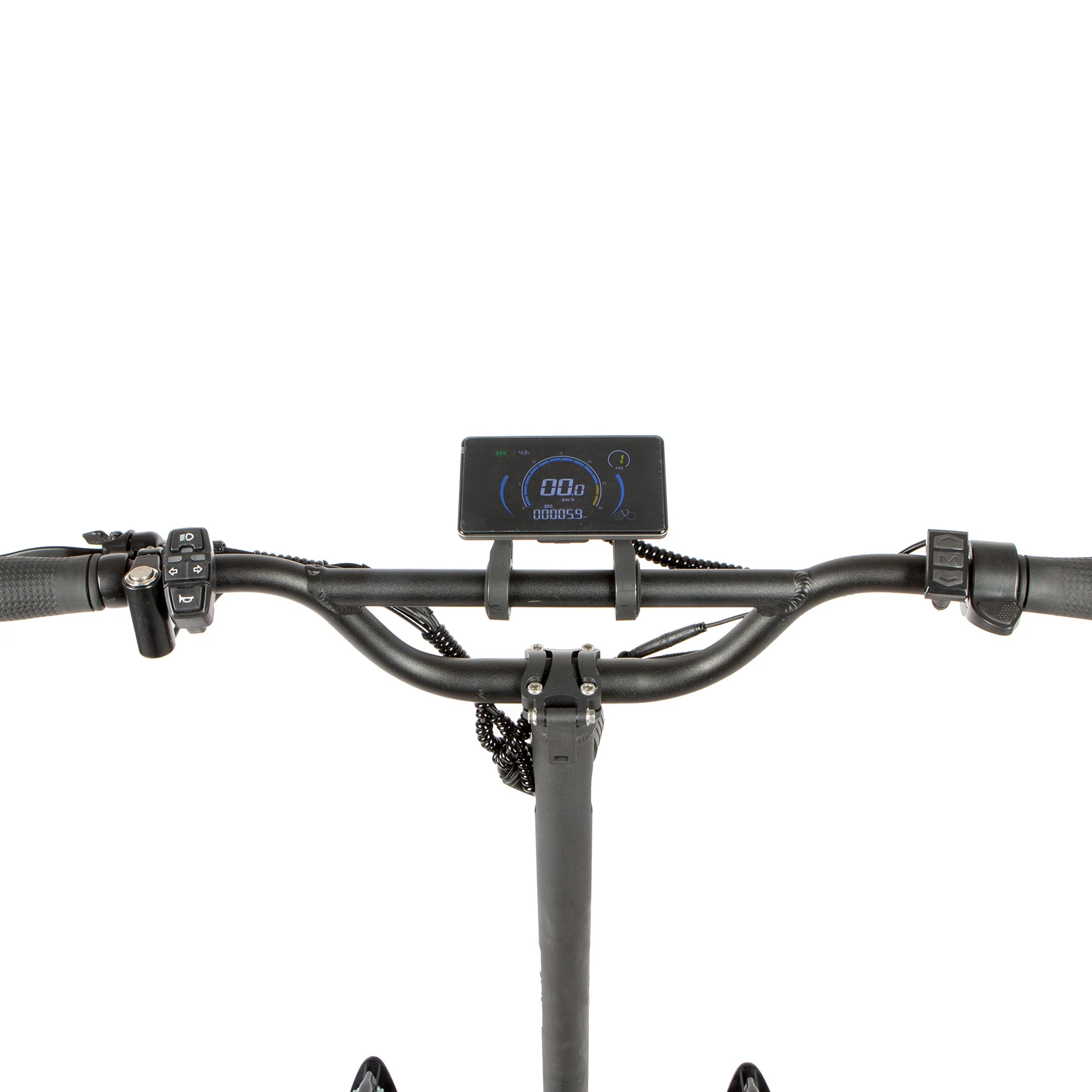 The control pad, thumb throttle, and horn controls are grouped in one easy-to-reach position on the bar.